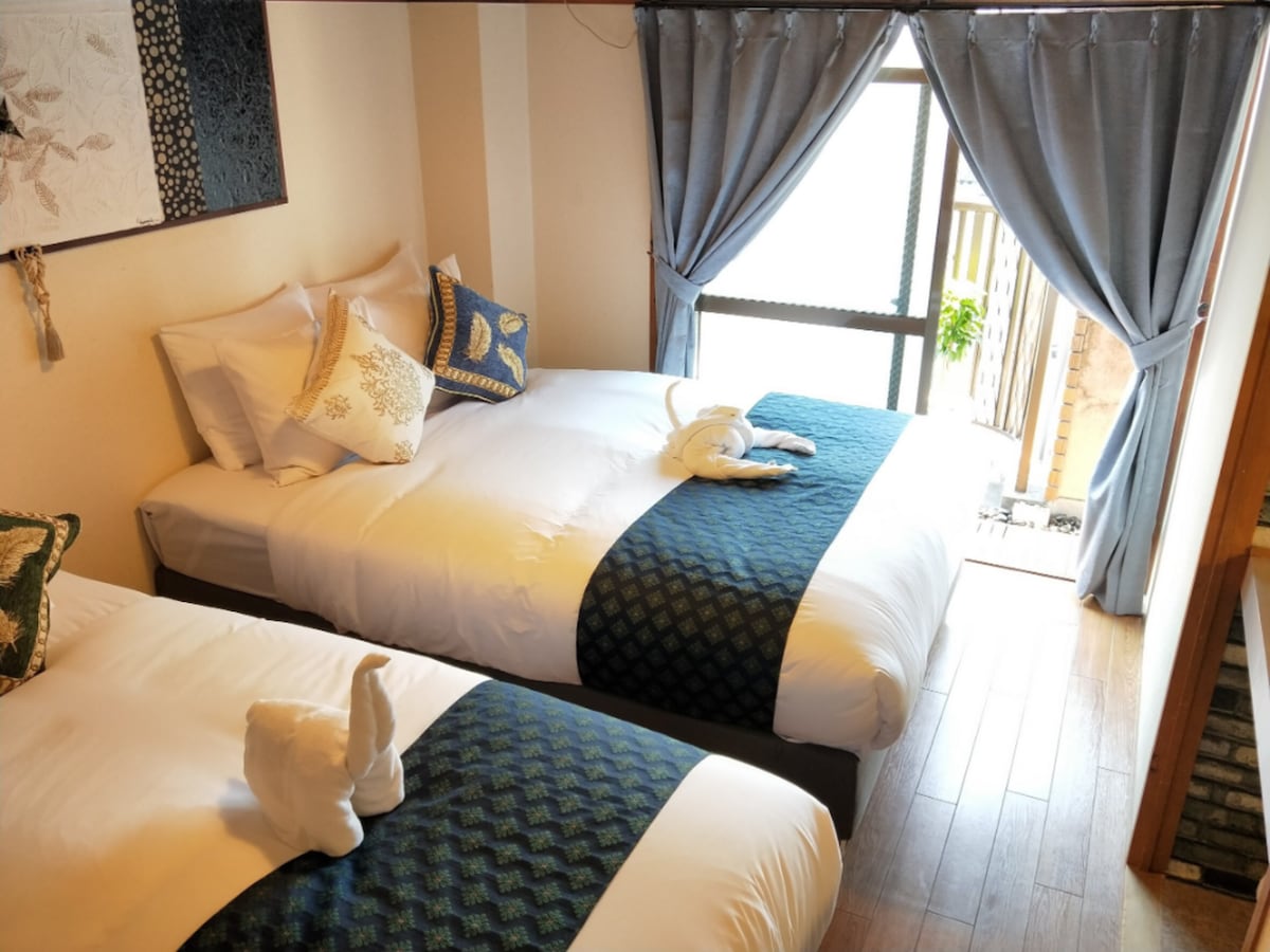 重新开业!享受特别的京都住宿体验! 我们的宽敞空间最多可容纳3位客人,且费用相同。位于京都市中心,交通非常便利。距离最近的车站步行仅需5分钟,新鲜超市步行5分钟,便利店步行2分钟,锦市场步行8分钟,所有设施都在步行范围内。您可以在设备齐全的厨房内自行烹饪,也可以享受附近店铺的外卖或配餐服务。此外,周围还有众多吸引人的餐馆和时尚的商店。 为了消除旅途疲劳,我们特别注重舒适的睡眠环境,提供了由日本床具公司——宫内厅御用品牌——生产的高品质大床。同时还有专门的檜木浴缸。洗手台和卫生间各有两个,并配有带干燥功能的洗衣机和衣橱,非常适合长期入住。 完全包租的私人空间,让您安心放松,尽享京都历史的独特魅力。进入屋内,您会看到西阵织的拉门和祖父这位版画师的作品。在这里度过一个特别的京都假期吧! 非常抱歉,京都市住宿税请您在入住当天以现金支付。 感谢您的理解与配合。