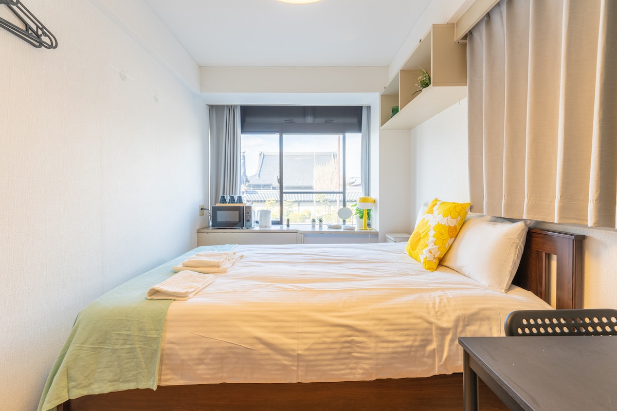 B1京都錦巿場四條河原町有陽台有電梯步行祗園、高島屋、鴨川,清水寺[京都藝術房-双人床]