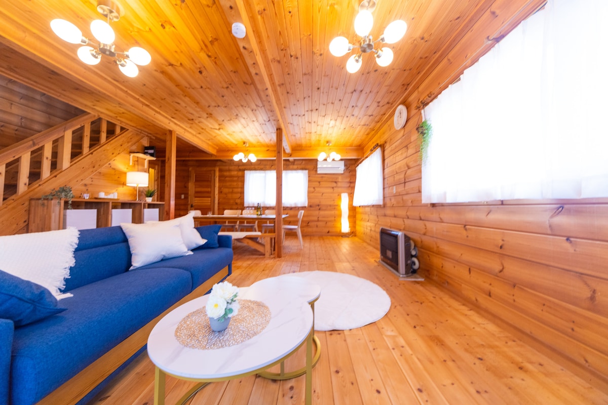 自然に囲まれたログハウスで、冬はウィンタースポーツ、夏は涼やかな避暑やBBQなど、四季を通じてアウトドアを満喫できるロケーションです。車で約10分の場所に町があり、スーパーや飲食店へのアクセスも良好です。 ペット同伴可能な施設で、屋外にはドッグランスペースも完備しています。ご家族やご友人、愛犬と一緒にBBQを楽しみながら、ゆったりとした時間をお過ごしください。 注意事項 ※本リスティングはペット可(別途料金要)となっております。毎回、チェックアウト後にはプロによる清掃を実施しますが、においに敏感な方や犬アレルギーをお持ちの方は予めご了承のうえ、ご予約ください。 ※今津町は自然に囲まれた環境です。動物や植物、昆虫などが多く生息しており、まれに施設周辺や室内に姿を見せることがあります。気になる場合は、外出の際にドア・窓がきちんと閉まっているかご確認ください。 ※施設周辺には木々が多く、できる限り落ち葉の清掃を行っておりますが、自然環境のため完全に取り除けない場合がございます。あらかじめご理解いただけますと幸いです。
