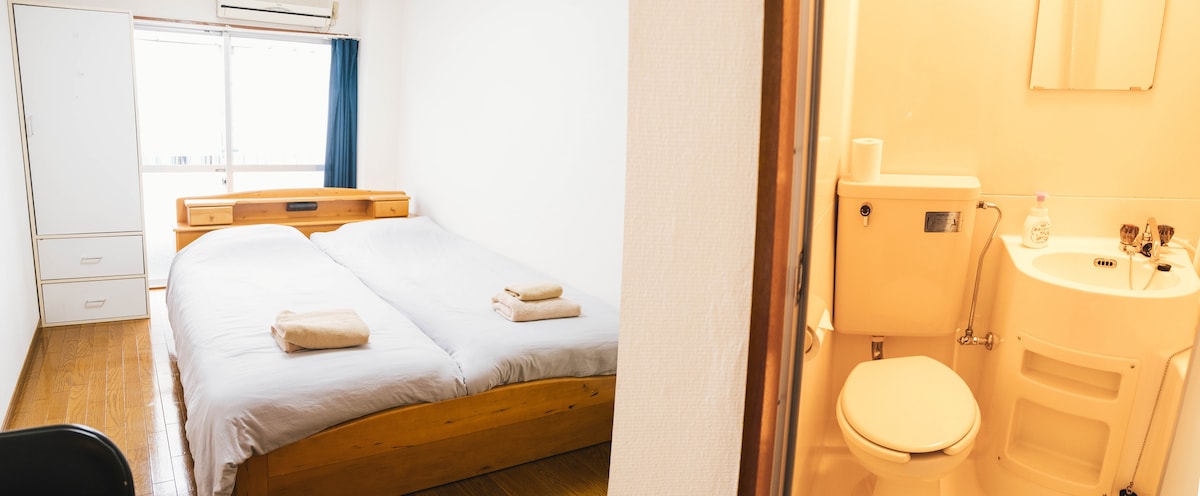 独立单间公寓,配备标准双人床,位于大阪和京都之间