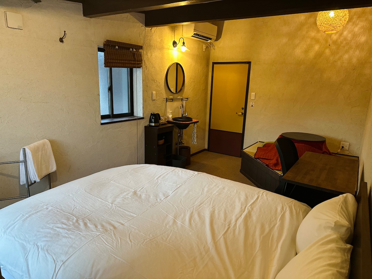 築110年以上の木造建築をリノベーションしたホステルです。ワークスペースやシェアキッチンがあり、仕事や料理ができます。 - 京都駅からは205番のバスで6分、もしくはタクシーで7分です - 京阪『清水五条』駅から徒歩4分、阪急『京都河原町』駅から徒歩15分、JR『京都』駅から徒歩17分、地下鉄『五条』駅から徒歩10分です - 有名観光地である清水寺エリアへはバス3分 / 伏見稲荷へは電車7分 / 錦市場へはバス5分とどこにでもアクセスしやすいです - コンビニ・スーパーまで徒歩4分 - 110年以上の歴史のある建物を10部屋ほどのホステルにしました - 100年前は遊郭として使われていました - 他のゲストとの交流も楽しめます - 壁が薄く周りの音が聞こえやすい造りになっていますが、昔ながらの日本の建物をお楽しみください - レストランが併設です - すぐ近くには鴨川があり、ゆっくり過ごせます - トイレ・シャワー・洗面台は共有ですが、徒歩2分の場所に初心者でも入りやすい日本の銭湯があります