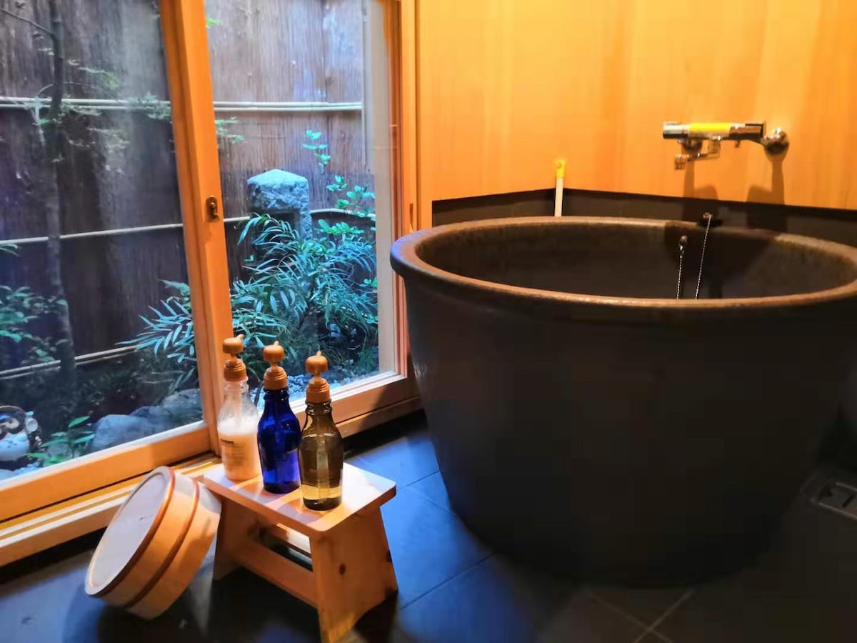 京蘭【水月邸】京都站步行8分露天风吕一栋租 日本六大古窑信乐窑(信乐烧)陶器浴缸带庭院