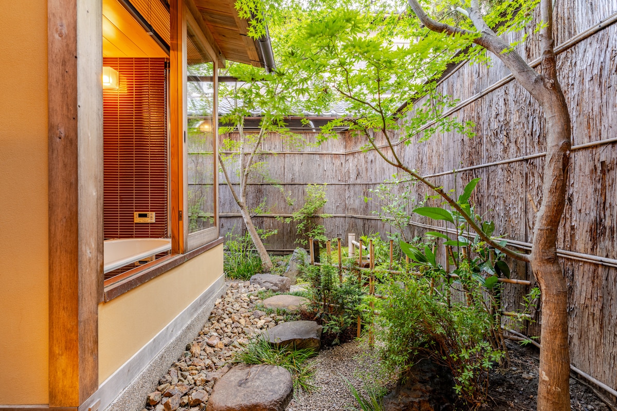 檜木浴室、日本庭園和枯山水藝術融合的京都町屋