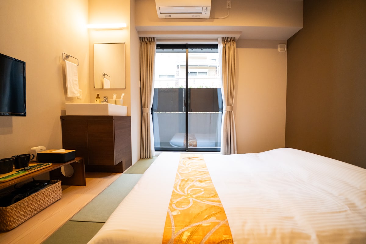 新建的漂亮房间!前往观光景点非常方便!步行 8 分钟即可抵达五条站!