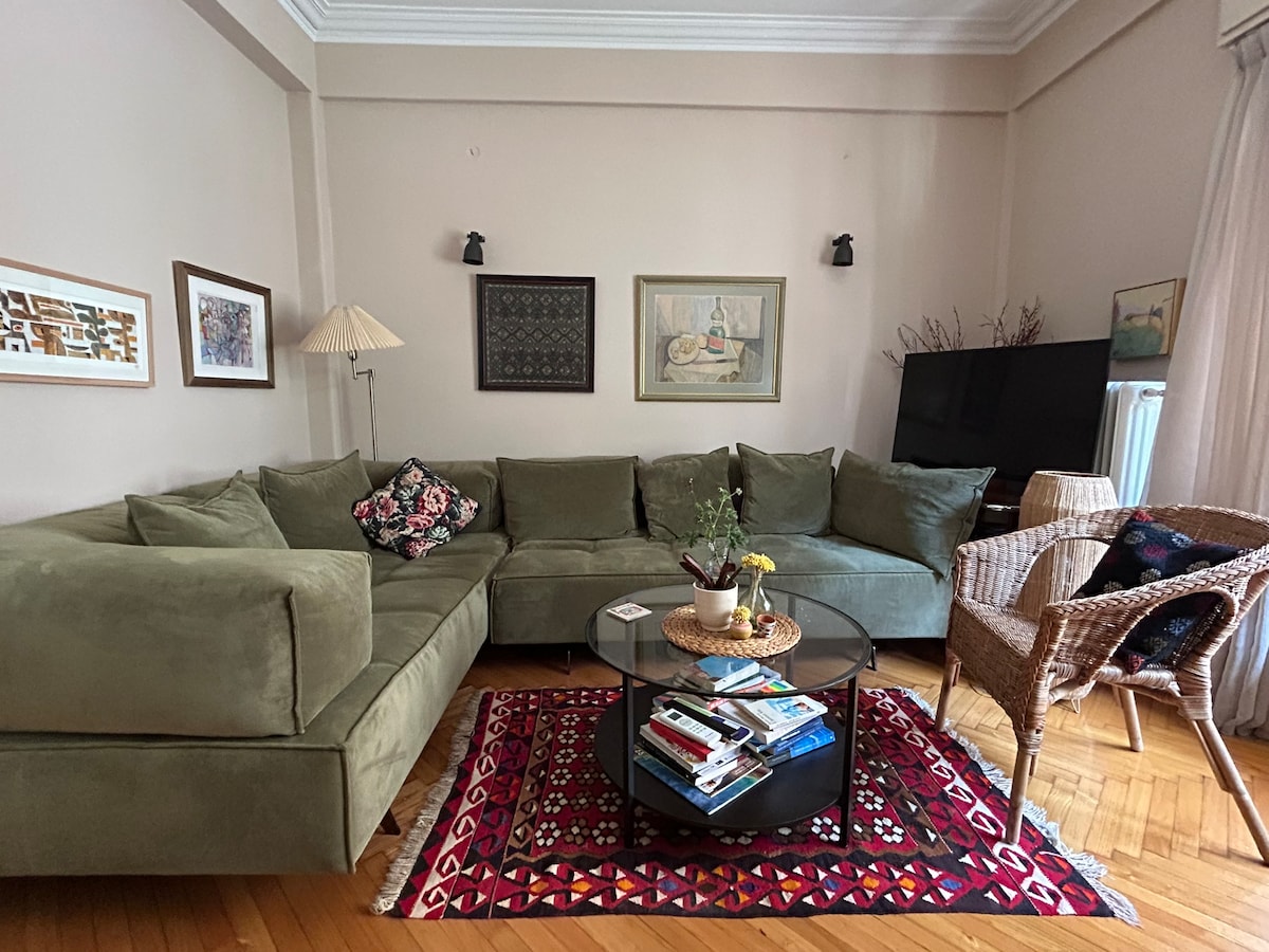 A newly renovated apartment conveniently located in the heart of Athens. Inspired by a love for Mid Century Design, every detail in this home has been carefully selected to provide a retro look with all the modern conveniences. Only a 3 minute walk to the nearest metro station and 4 stops away from Monastiraki Sq, you'll have easy access to all the must-see attractions of Athens.