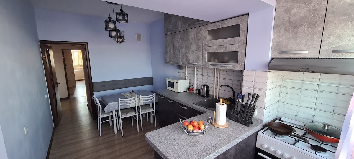 Cozy apartment near the city center. The apartment has everything for a comfortable stay, work and cooking. Next to the goBus stop from Bishkek. Convenient if you arrived by bus. Supermarkets and cafes (Dastorkon) are within walking distance. This is a one-room apartment on the second floor with a separate kitchen and shower. I will be happy to answer all questions and help if you need to know something about the city. For those who want board games and books. You can smoke on the balcony.