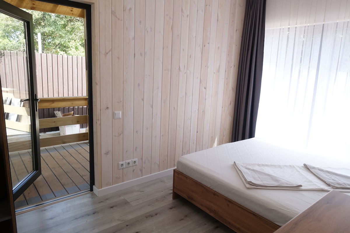 Brand new wooden house suitable for all year living with incredible view of mountains through large panoramic windows. Family friendly gated community. Fully equipped brand new kitchen, dining area for up to 6 people, TV area, terrace with table for 4. Lawn & outdoor work-out zone access. Issyk-Kule lake beach in 7 min walk. Central Presidential Park (16ha or 40acres) with large trees, art installations , coffee shops, restaurants, bike & pedestrian routes in 10 min walking distance.