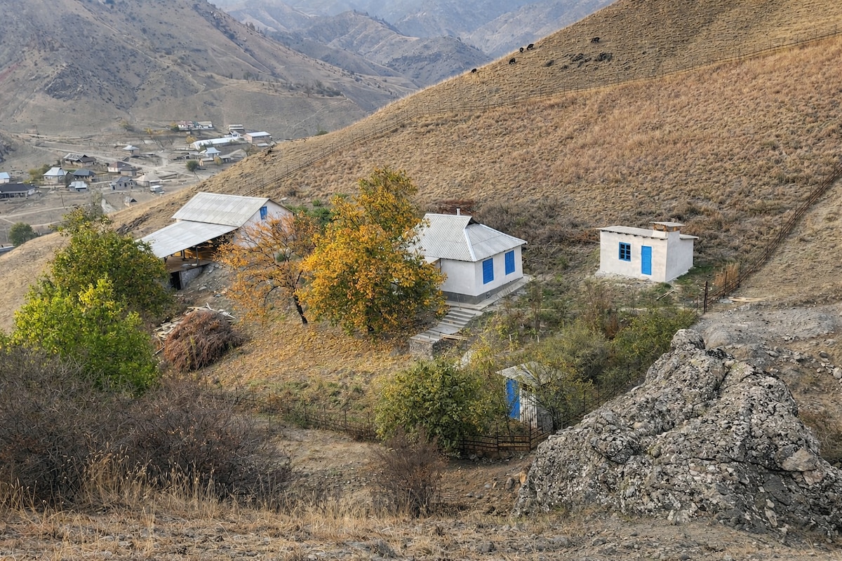 A family-friendly cabin built from all-natural materials, renovated in 2025, and offering amazing views from the porch, perfect for tea and map planning before backpacking in Sary-Chelek.