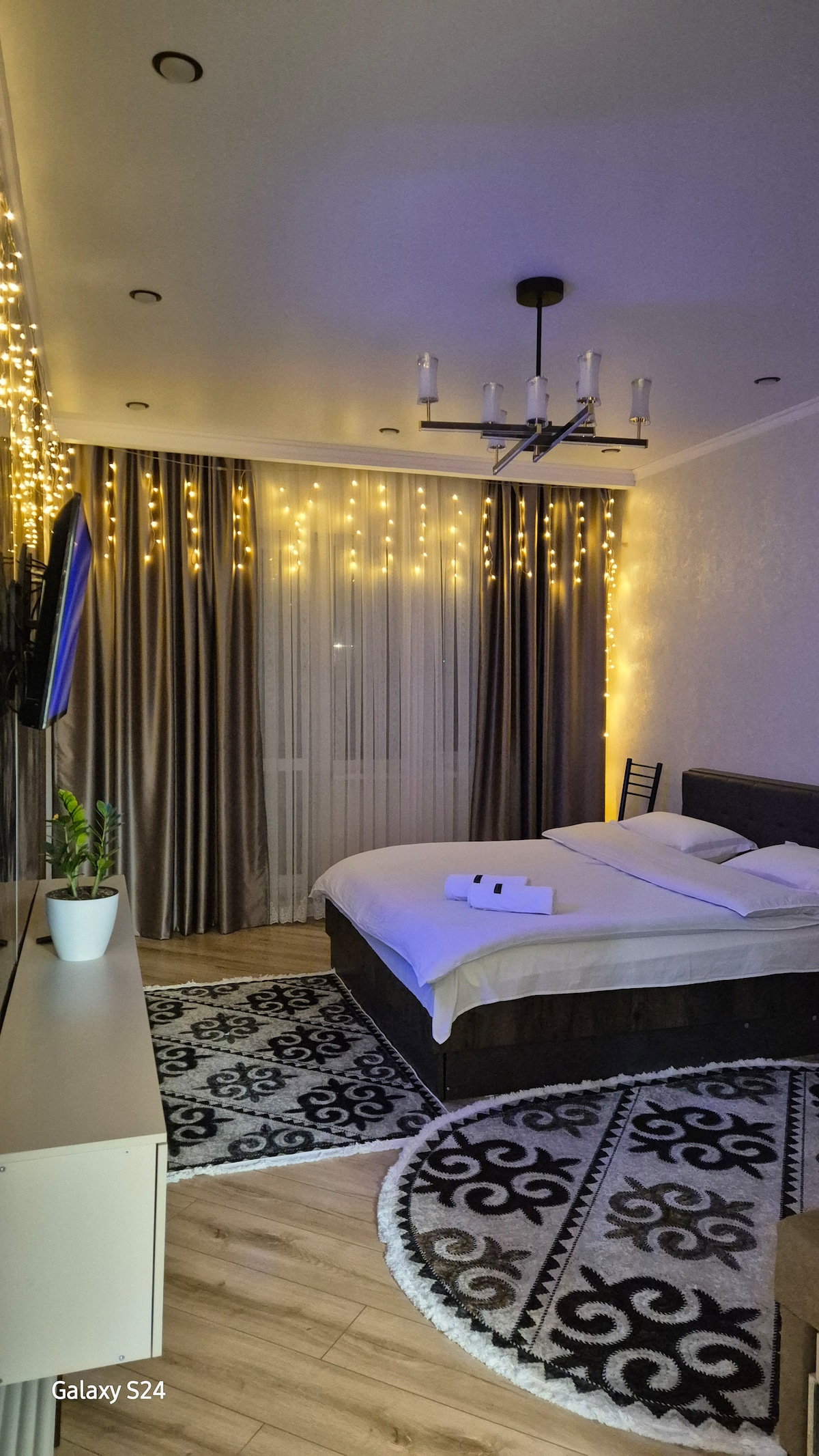 The condo is located on the seventh floor of a new building. You can enjoy the panoramic view of the city, mountains and even the Issyk Kul lake. The downtown market of the the city is in walking distance. Many cafe and restaurants nearby where you can enjoy traditional food. This stylish place is a perfect place to stay for group trips.