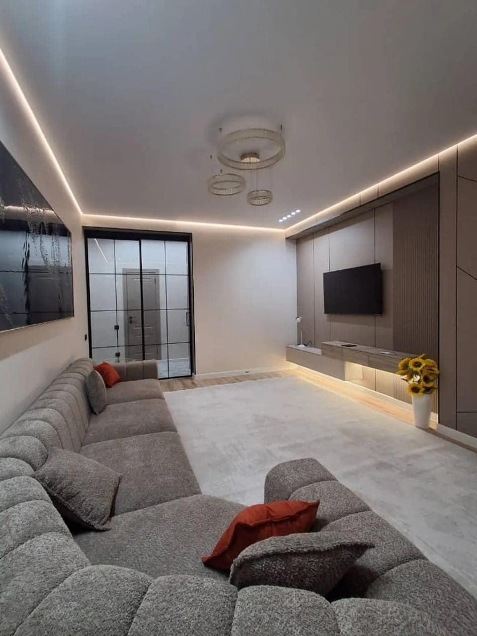 Cozy, Luxury Apartment for a comfortable stay in the freshly made Elite House located in the city center. The house is striking both day and night. At night, the building shines very beautifully, can be seen even from a long distance. On the ground floor of the building, there is a 24/7 supermarket & pharmacy, GYM, beauty salons, bank. The apartment is very bright and comfortable with all amenities. The building is safe and guarded around the clock, there is also a playground on the territory.