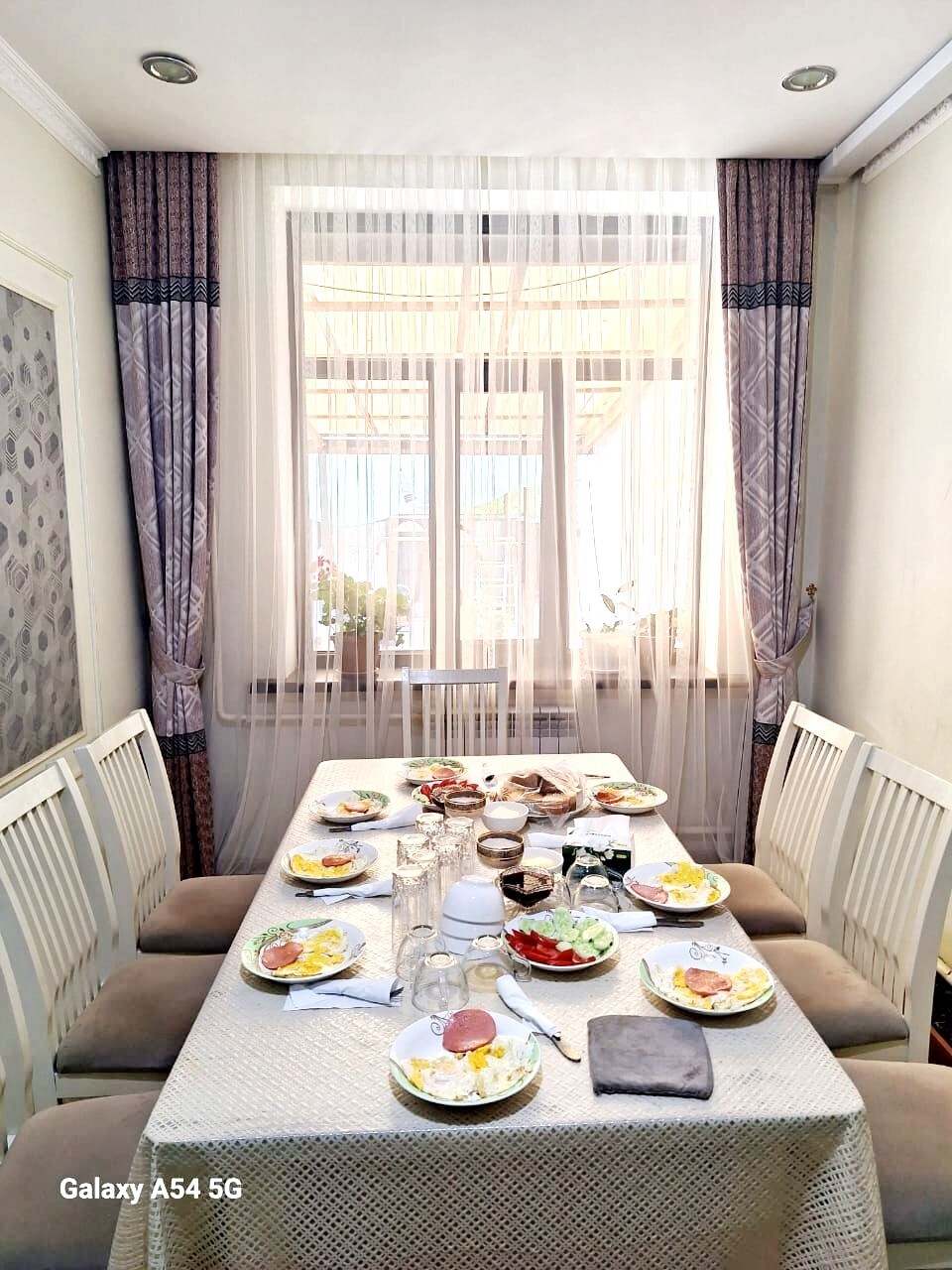 It is a 2 floor house with a small garden and a yard. There is an outside terrace with the balcony and outside seating area as well as a BBQ place. There is a sauna and a laundry room as well as inflatable swimming pool. The house is located in a quiet neighborhood within 2 mins walk from the biggest supermarket, 10-15 mins walk from a local food market - Osh bazaar; 3-4 km away from the city center. It is ideal for a family or a few families.