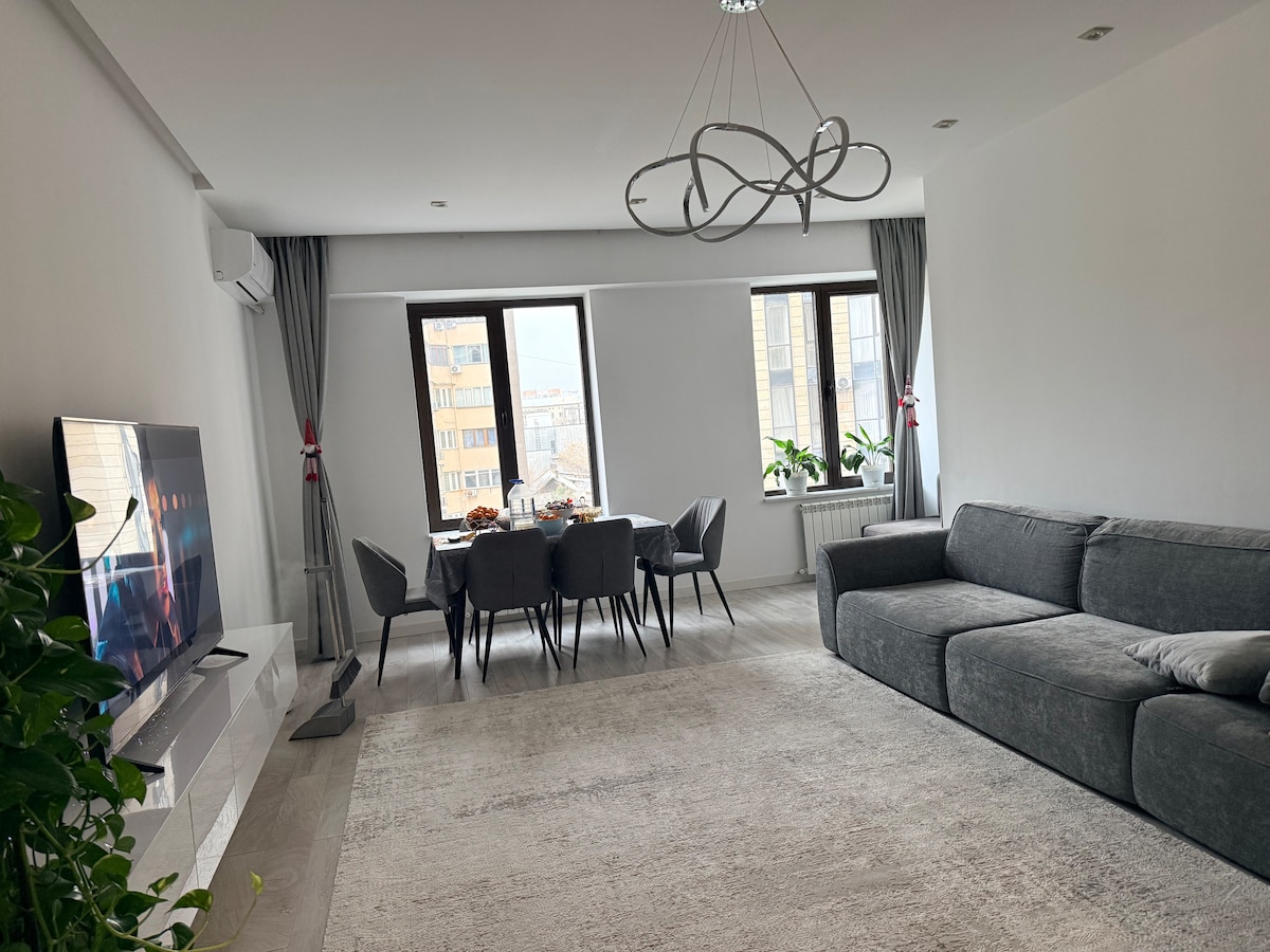 Welcome to our luxurious and spacious apartment located in the heart of Bishkek! Step into a place of comfort and convenience where every detail has been meticulously crafted to ensure an unforgettable stay. Stay connected throughout your stay with high-speed Wi-Fi. And with 24/7 security, you can rest easy knowing that your safety is our top priority. Whether you're here for business or leisure, our apartment provides the perfect home away from home.