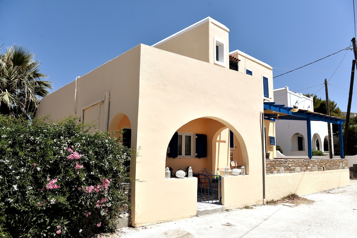 Μια κυκλαδίτικη μονοκατοικία 170 τετραγωνικά δίπλα στην θάλασσα με τέσσερα υπνοδωμάτια μεγάλο περιβάλλοντα χώρο με λουλούδια και κληματαριές στην αυλή έχει μπάρμπεκιου και τραπεζι εξωτερικού χώρου για 10 άτομα. απέχει 20 χιλιόμετρα από τη Χώρα του νησιού και 15 χιλιόμετρα από το λιμάνι