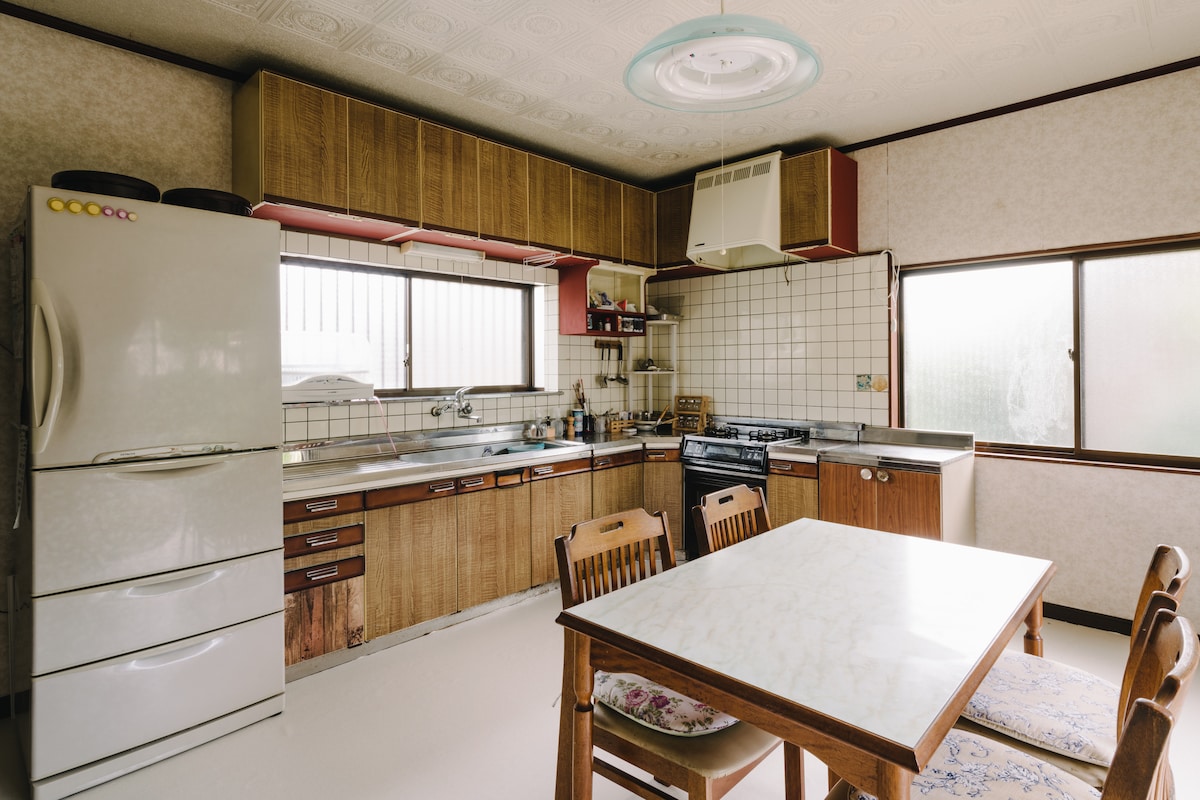 Free 3Parking space! Up to 9persons group can stay can enjoy very private space 1日1組限定の1棟借りのプライベート空間! You can come with friends can play with your kids just back side of this house . There is slide and swing 15mins from Ushizu station. 5mins walk seven eleven 5mins walk 24hrs open udon shop , 15mins Kiyomizu water fall 家の前には90坪ほどの庭があり、後ろは佐賀県銘木にあたる巨木がある公園になってます。庭でブランコに滑り台であそべます.春には桜、竹林も雰囲気があります。 車で五分以内に温泉、食事処、スーパー、コンビニは徒歩5分