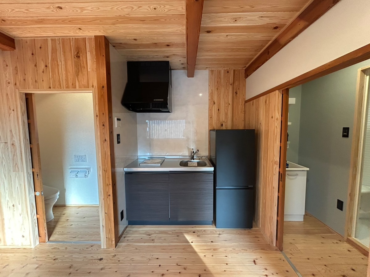 ■木のぬくもりに抱かれる、静寂の隠れ家 扉を開けた瞬間、心地よい木の香りがあなたを迎えます。 当物件は、周囲を豊かな木々に囲まれた、一棟貸し切りの「離れ」です。聞こえてくるのは風に揺れる葉の音と鳥のさえずりだけ。日常の喧騒を忘れ、大切な方や愛犬と一緒に、心からリラックスできる時間をお過ごしください。 ■コンパクトで機能的な、こだわりの空間 ロフト寝室: 木の勾配天井が落ち着く2階には、お布団をご用意。隠れ家のような空間でぐっすりとお休みいただけます。 充実の設備: IHコンロのキッチン、電子レンジ、冷蔵庫、清潔なシャワールーム、トイレを完備。長期滞在や自炊にも対応しています。 ペットフレンドリー: ワンちゃんも大切な家族の一員。室内でも木のぬくもりを感じながら、一緒におくつろぎいただけます。 ■ゲストへのメッセージ 都会のスピードから少し離れて、深呼吸してみませんか? 朝は庭で愛犬と走り回り、夜は木の温もりに包まれて眠る。そんな「何もしない贅沢」を、ぜひここで体験してください。こちらのユニークで静かな宿泊先で、ごゆっくりおくつろぎください。