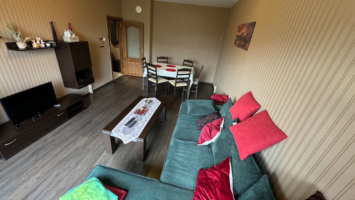 New fully furnished two bedroom apartment at the foot of Vitosha mountain in the capital of Bulgaria - Sofia. The area provides excellent communications and beautiful panoramic view. The space: Suitable for 4 guests+baby(baby crib is available). Living room with sofa(for one guest) bedroom(for two guests) kids room(one single bed) , 2 toilettes and 1 bathroom. Fully equipped kitchenette, washing machine and dishwasher, iron+ironing board. All the things you need for a perfect stay.