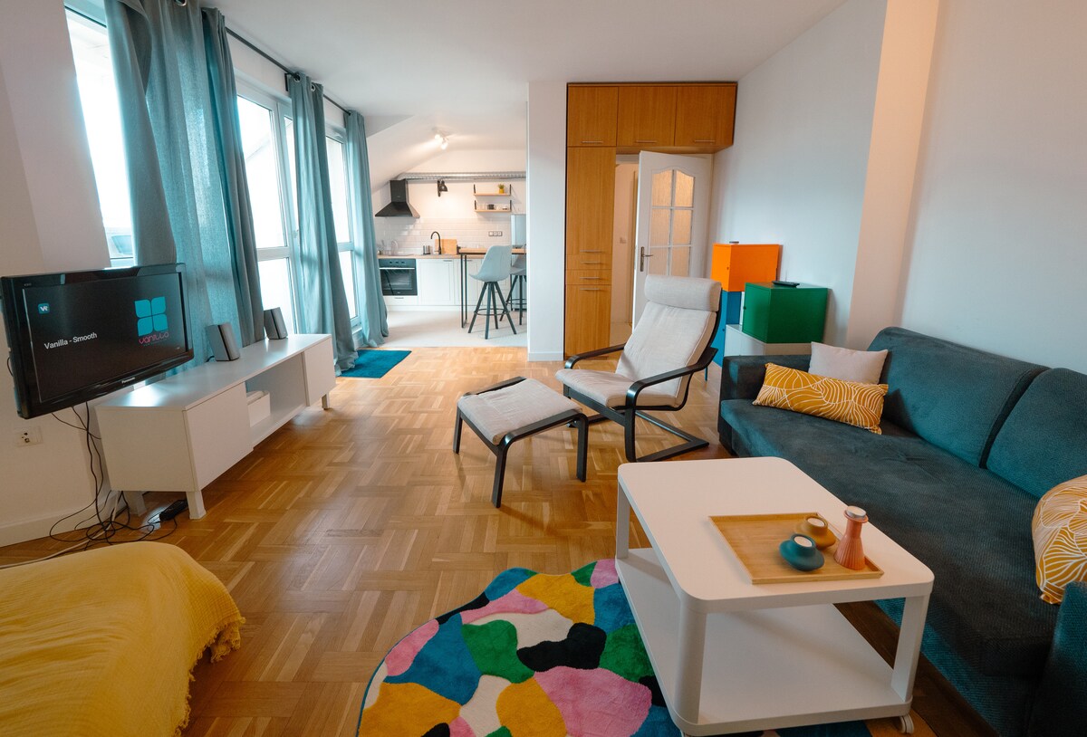 Welcome to our brand new apartment, created with a funky design and located right next to Bulgaria's largest business hub. Peaceful and colorful, this space offers all the comfort you need for a business or leisure trip to Sofia. With two air-conditioners for hot summer days and central heating for cozy winters, you'll be comfortable year-round in this newly renovated building. You can easily check-in with the keys at the door lady, or you can freely self check-in with the keys from the lockbox.