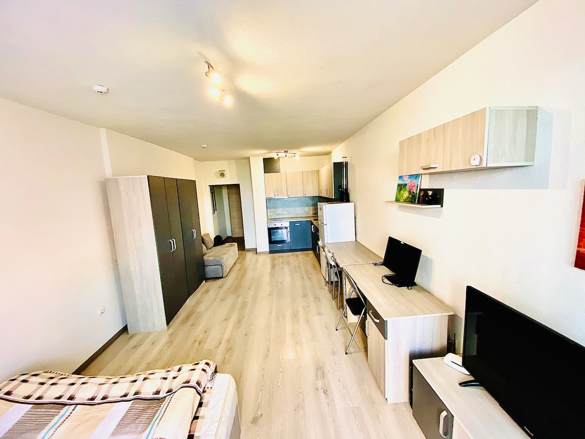 Discover our new apartment in the heart of Blagoevgrad, Bulgaria. Situated just minutes away from the vibrant top center and AUBG the South West University. Our cozy accommodation, perfect for short and long stays, ensures a comfortable experience for solo travelers, couples, or small groups. The central location, next to the AUBG and the South West University, makes it ideal for students and visitors. Your perfect stay awaits! See you soon!