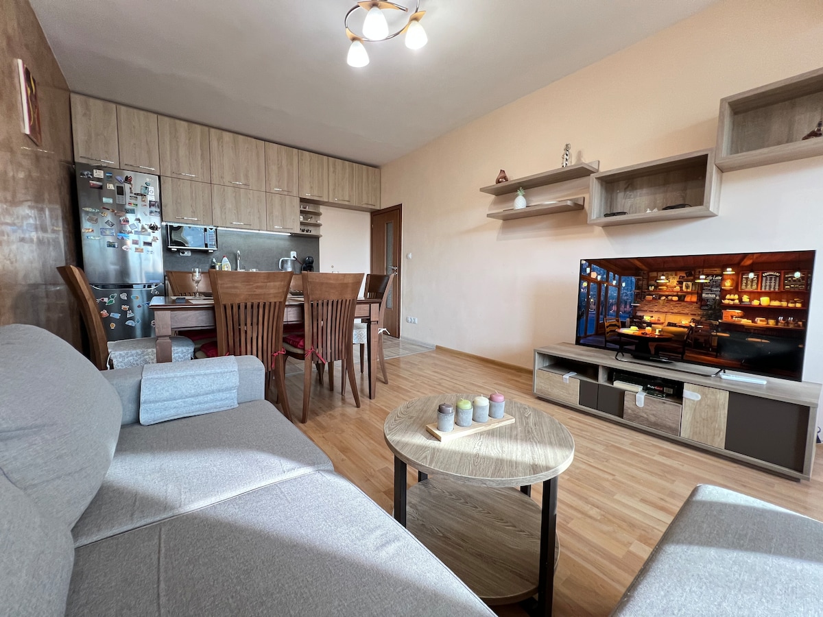 Welcome to our cozy apartment, which is located next to the largest business center. This apartment is extremely quiet and peaceful as it is located in a gated complex. Suitable for your business trip or family trip. Just a few minutes' walk away is a metro station that will take you to the center of Sofia