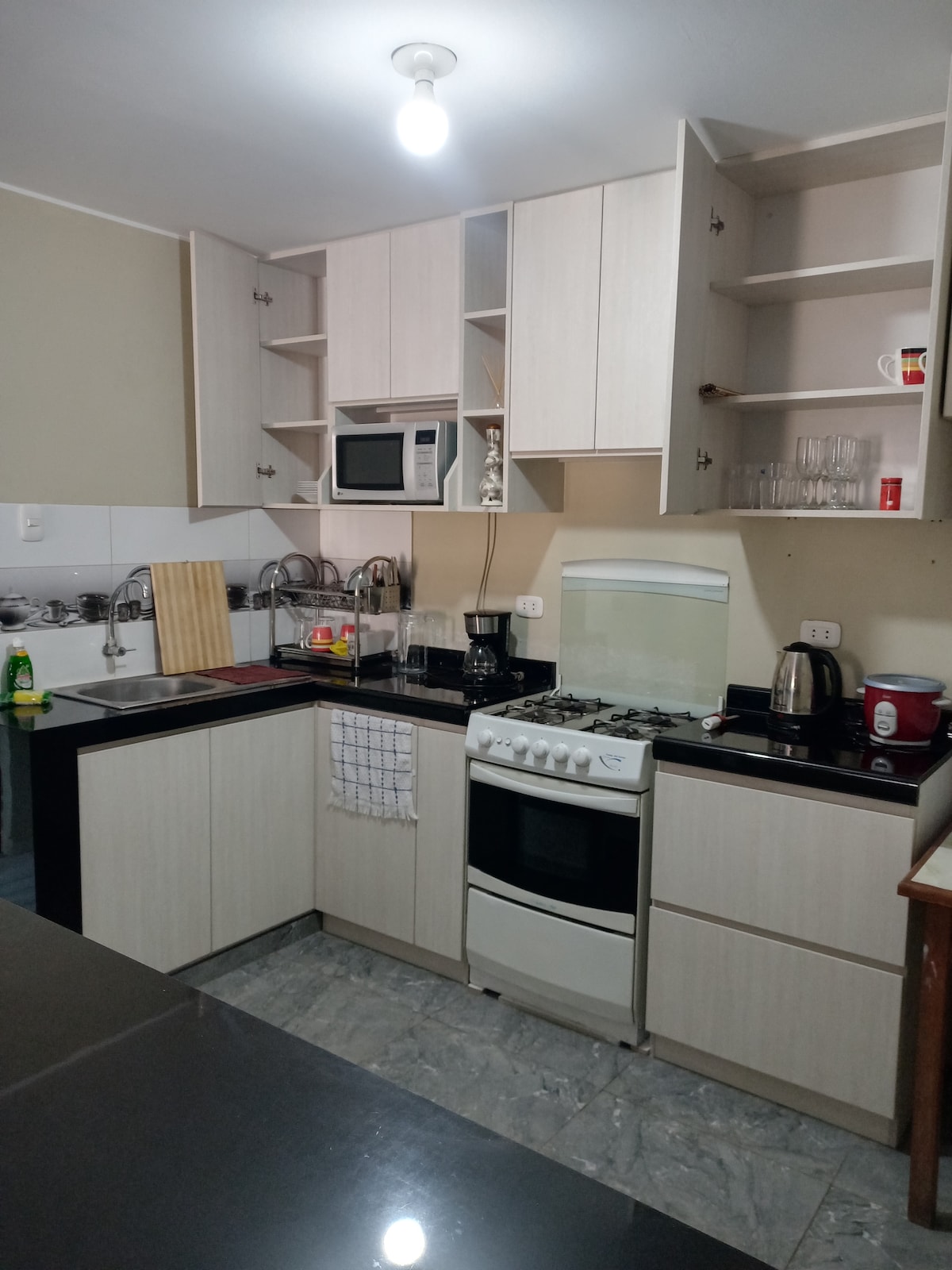 Disfruta de una estancia cómoda, segura y tranquila en este primer piso totalmente amoblado, a 6 minutos de la plaza de armas, ideal para turistas o personas que visitan Ica por trabajo o descanso. El espacio cuenta con 2 dormitorios, sala comedor, cocina equipada, baño privado, lavandería, WiFi gratuito y cochera. Todo lo que necesitas para sentirte como en casa, ubicado en una urbanización con vigilancia y fácil acceso.