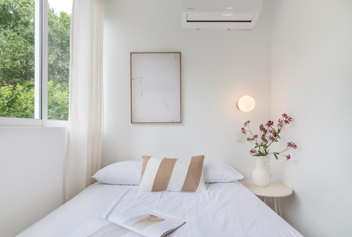 “Vine” apartment is located in Madrid center, off Gran Via, on a quiet street in a new building with elevator. It is nature-inspired, bright & modern, has WiFi, is fully equipped and is very close to restaurants, tapas, the Metro, shops & galleries. Best for a single, couples or couples with a kid! Pets are invited happily!!! The apartment is located in a new buliding, with an elevator! It is modern designed, with lots of greenery, themed to its name, Vine. A huge window along the length of the whole apartment overlooks a beautiful private garden. The apartment consists of a bedroom with a double bed, a living area with a single pull-out sofa, kitchen and bathroom. It has WiFi and is fully equipped, including a washing machine, TV, air conditioning, and Nespresso coffee maker - all just ready for your comfort and enjoyment! The apartment is a studio open space apartment - and it's all yours to enjoy! There are no areas in the apartment that you cannot use or access! We love hosting, but also respect our guests' privacy! We are here for you as much as you would like! Located just off Gran Via in lively buzzing Malasana neighborhood with its great range of authentic cafes, tapas & bars. Huge Zara Primark & Mango are minutes away. Best Madrid sites like Royal Palace, Puerta del Sol & Museums are in walking distance The Central Metro Station Gran Via is a 2 minute walk from the apartment. From there you can take the metro to anywhere you want in Madrid and also to all the train stations that will take you out of Madrid to the rest of Spain. If you come by car, a big parking lot is located at Barco 1, Madrid, just a minute from the apartment. There is also a bicycle-rental station close by. A hosting kit of water, soda, milk, coffee, tea and sweetners will be waiting to welcome you :-)