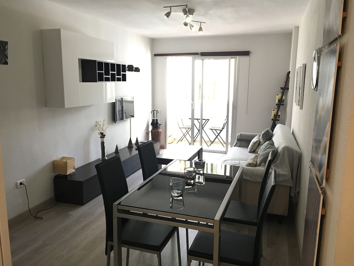 APARTAMENTO MODERNO Y CENTRICO EN SANTA CRUZ DE TENERIFE. A escasos metros de la línea 1 del tranvía y líneas de autobús. Zona con cafeterías, restaurantes y tiendas de todo tipo, además de bonitas plazas y parques infantiles, pero tranquila. Se puede disfrutar de la playa de Las Teresitas a 9 km, o el Parque Marítimo César Manrique, a 2 km, Póximo a él, El Palmetum, jardín botánico de 12 Ha. especializado en palmeras. A 500 m, se encuentra La Noria, zona gastronómica y de ocio nocturno.