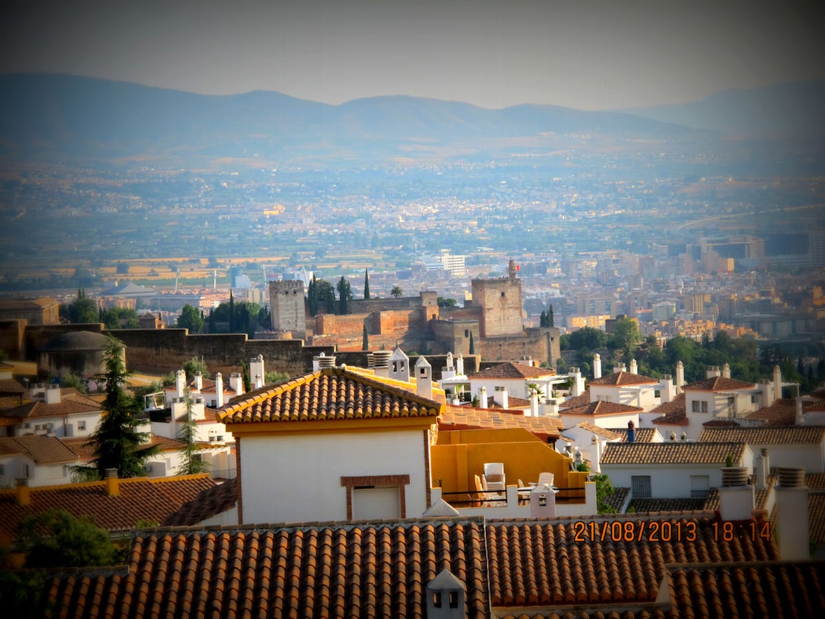 CASA DEL BESO The house is very authentic, with a terrace and views of the Alhambra, it was designed and rehabilitated by our father, Manuel, an architect who emigrated with our grandparents and who years later returned to his land, to our beloved Granada. It is located on a pedestrian street in the Lower Albayzin, 300 m. from Plaza Nueva, a largely pedestrian UNESCO heritage district. Thanks to the location you will not need the car and you can walk to the most emblematic places of Granada.