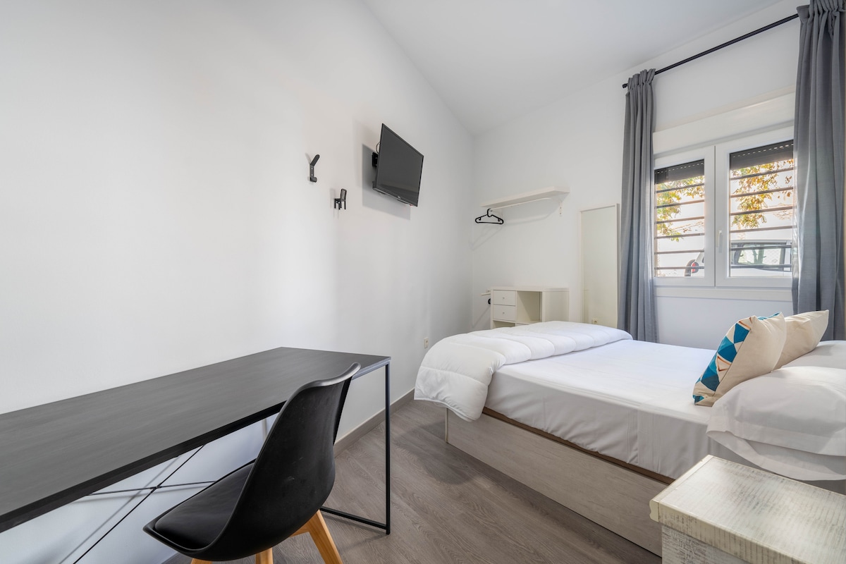 Alojamiento con capacidad para 4 personas, ideal para un grupo de amigos que quieren disfrutar de la ciudad. El apartamento se compone de un dormitorio independiente con dos camas independientes y un salón-comedor con una pequeña cocina. El salón dispone de un sofá convertible cama de 140 cm de ancho que permite dormir cómodamente a 2 adultos. Se aceptan mascotas bajo petición y con suplemento de 10 euros por mascota/día. Siempre han de estar supervisados y bajo la responsabilidad de sus dueños.