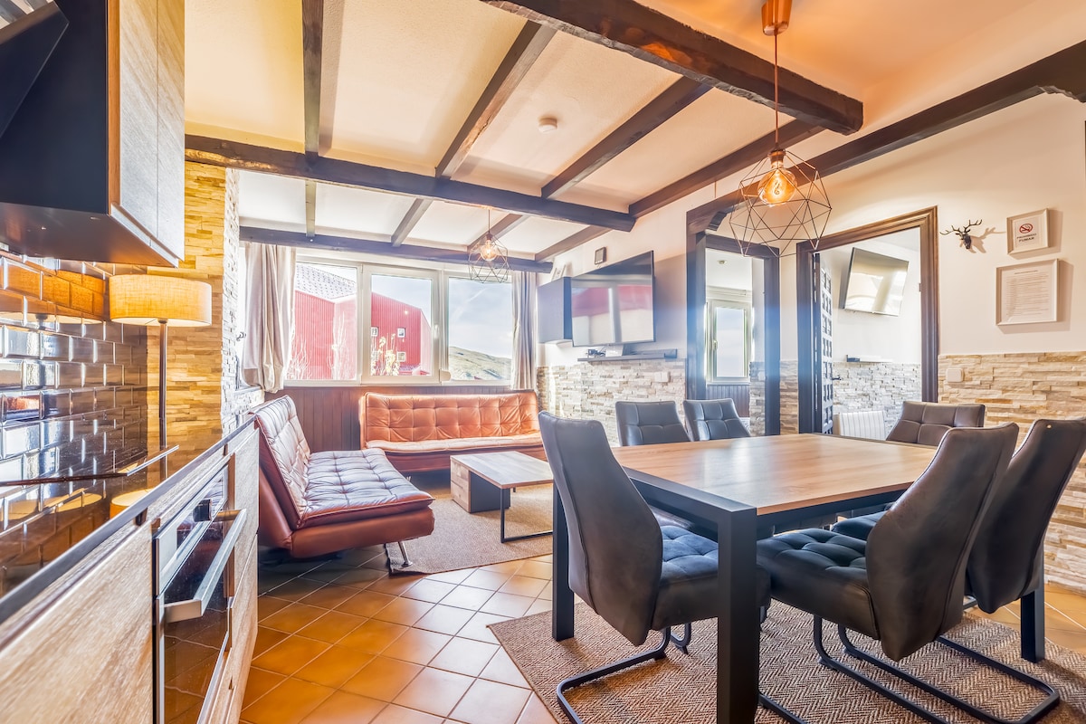 Magnífico apartamento en Sierra Nevada. Salón con chimenea, cálido y acogedor. Amueblado con elementos de alta calidad y diseño. Habitación con estilo y sofá cama en el salón. Cuenta con baño bien equipado. Dispone de terraza para disfrutar de las vistas y sus atardeceres y parking. El Check-in es totalmente online y seguro, no tendrás que esperar a retirar llaves, todo codificado. Alojamiento turístico perfecto para aquellos que buscan disfrutar de la nieve, naturaleza, comodidad y descanso.