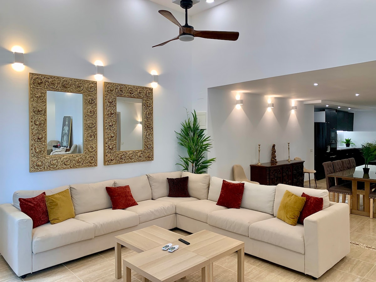 全新大型住宅-游泳池-12人。距离海滩仅几步之遥