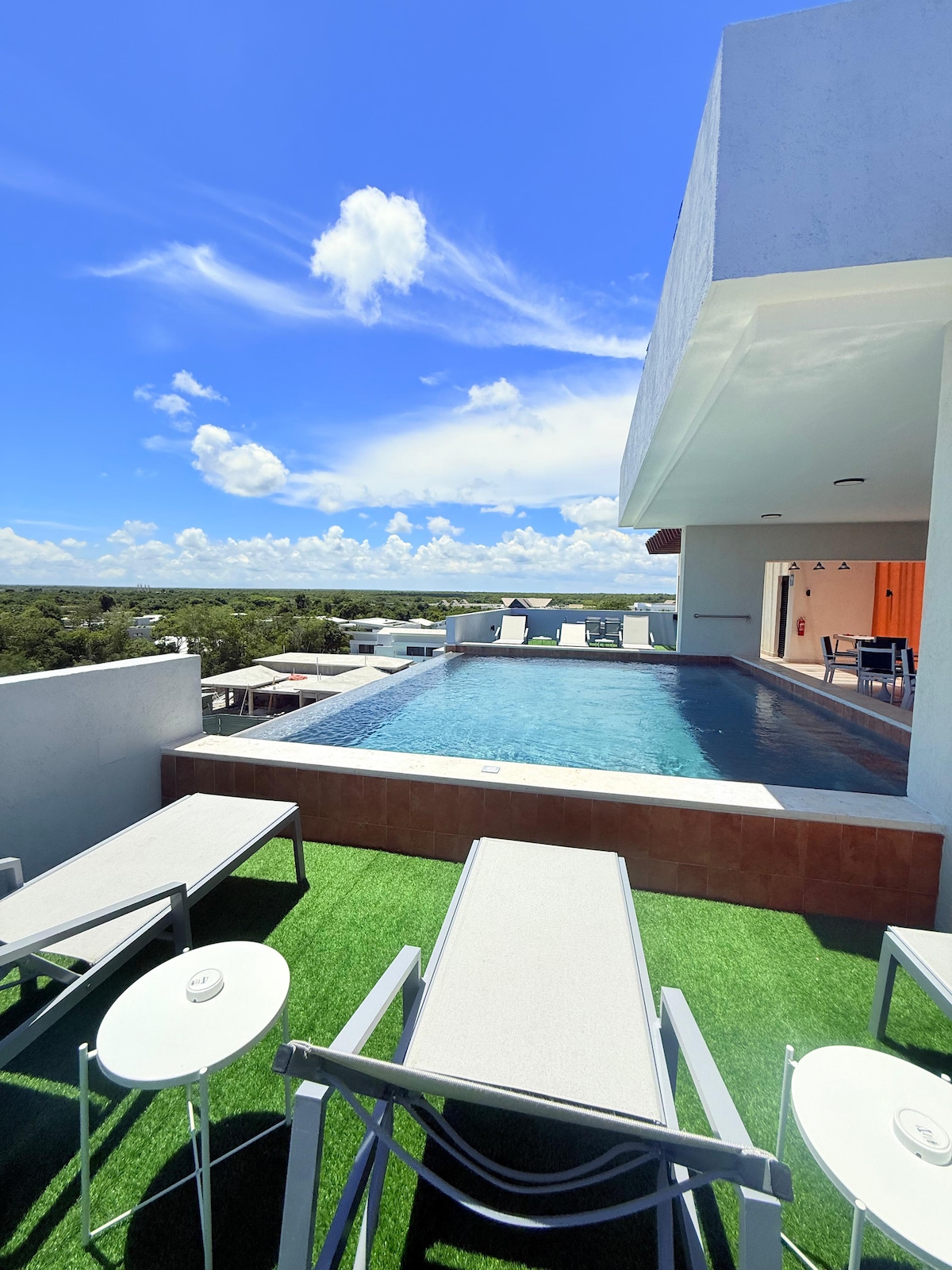 新房源靠近市中心的优雅顶层公寓,配备游泳池和烧烤设施。