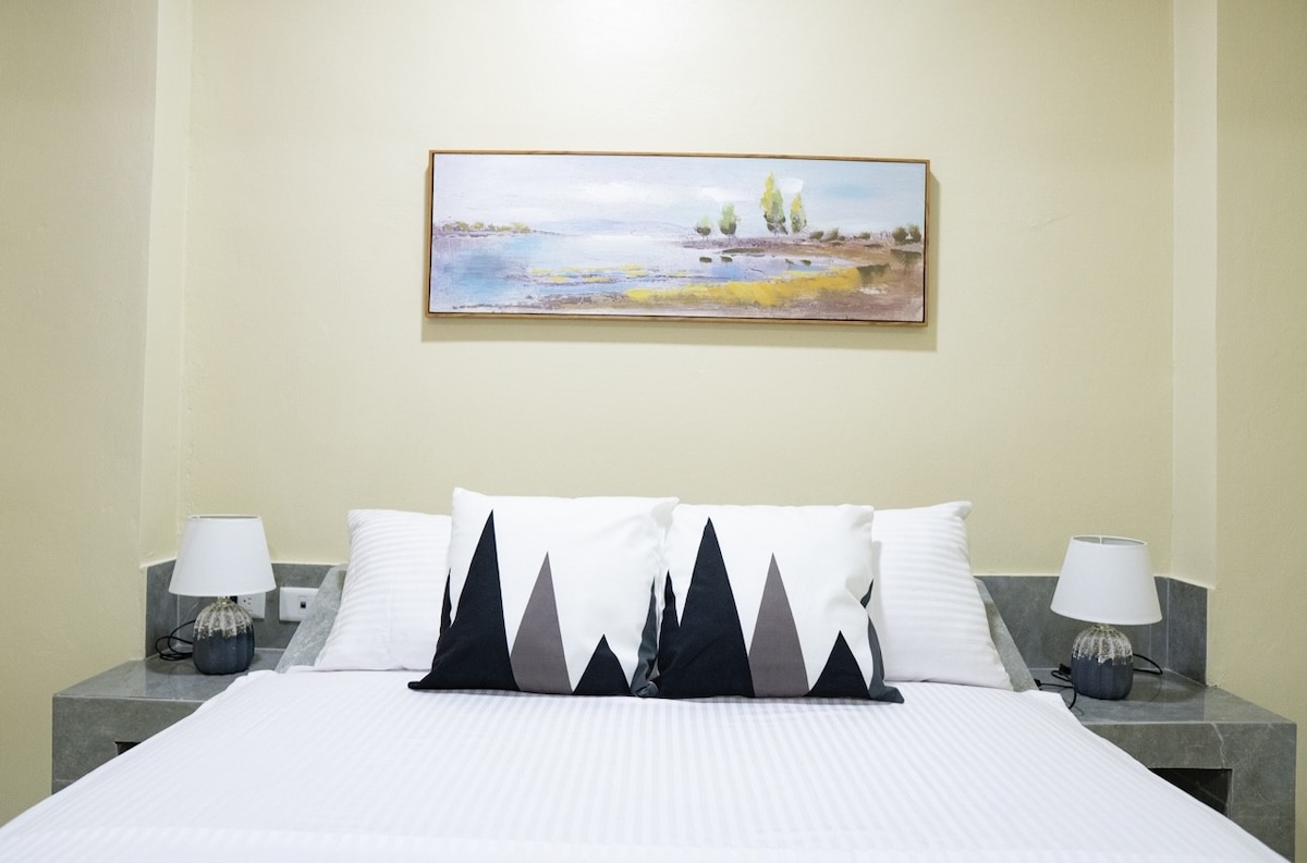 Upon entering, you'll be greeted by a fresh and modern decor, with soft tones creating a tranquil and serene atmosphere. The room is equipped with a comfortable double bed adorned with soft sheets and fluffy pillows, ensuring a restful sleep after a day full of activities. You'll also find a flat-screen TV for your entertainment. The private bathroom is equipped with all the necessary amenities, including a shower with hot and cold water, soft towels, and basic toiletries for your convenience.