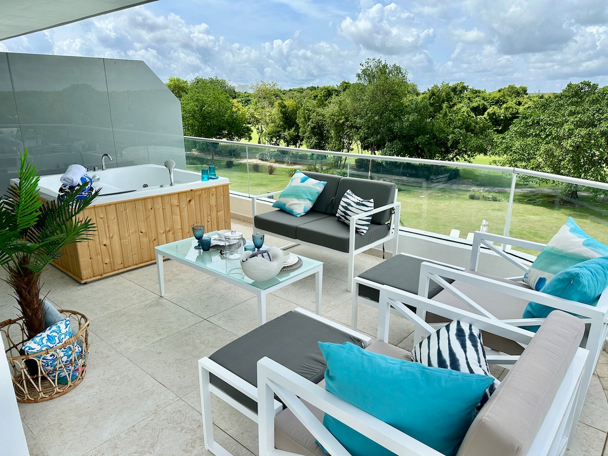 Espectacular nuevo Apartamento de lujo con piscina privada en la terraza, Justo a unos pasos de una de las principales playas de Bavaro. Un nuevo concepto de apartamentos en Punta Cana que te proporcionará confort, privacidad y seguridad para pasar tus vacaciones. Habitaciones amplias, cocina totalmente equipada, muebles de diseño, wifi de alta velocidad, check in online con la ultima tecnología. Sin duda una nueva experiencia para vivir Punta Cana de una forma diferente.