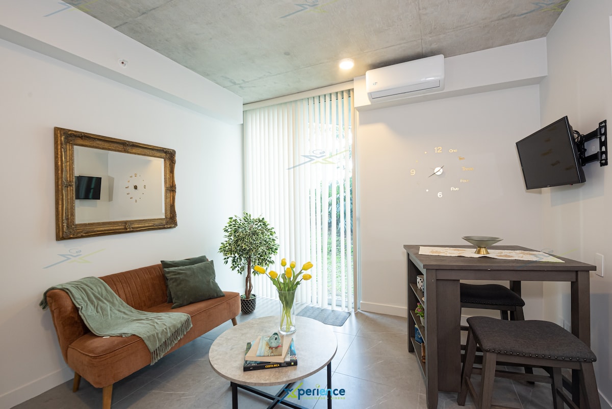 CR Stays Welcomes you to this fully-equipped studio just 4 miles from Juan Santamaría Airport. Enjoy breathtaking views of the Escazú mountains, a king bed, queen sofa bed, fast Wi-Fi, and air conditioning—ideal for 4 guests. The building boasts a gym, pool, BBQ terrace, private cinema, and meeting rooms. Minutes from Plaza Real Cariari’s shops and restaurants, and located in a prime business hub. 24/7 security for a safe, stylish, and comfortable stay.