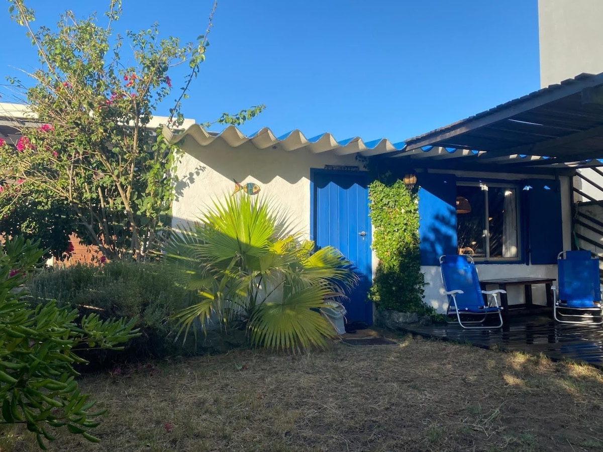 Cabaña con techo de quincha, a 5 cuadras de la playa (La Balconada, El Cabito, Los Botes). Supermercado a 2 cuadras. A pocos minutos del centro de La Paloma. Amplio jardín, con parrillero. WiFi. Televisión smart (sin cable). Aire Acondicionado. Entrada independiente. Zona de bosque. Ideal para descansar! Hablamos inglés. Horario de ingreso: a partir de las 16 hs Horario de salida: máximo hasta las 11 de la mañana. No aceptamos mascotas! IMPORTANTE: Estufa (interior) no habilitada para