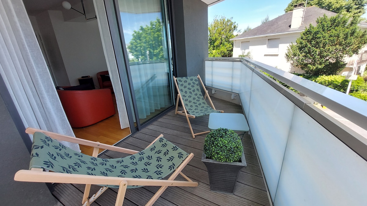 Plage, thalasso Rivage, voile à 5 min à pied. Grand et lumineux studio 2/4 pl de 31 m2 entièrement rénové au cœur de La Baule les pins avec balcon orienté ouest au dernier étage. Salon avec canapé convertible en 140 cm et un vrai lit de 140 cm.Cuisine entièrement aménagée et équipée, coin repas, salle de bains avec douche et WC.WIFI + fibre. Commerces, restaurants, marché à pied. Gare TER à 5 min à pied. Linge de maison et draps fournis.Laverie à 50 m de la résidence. Arrivée autonome