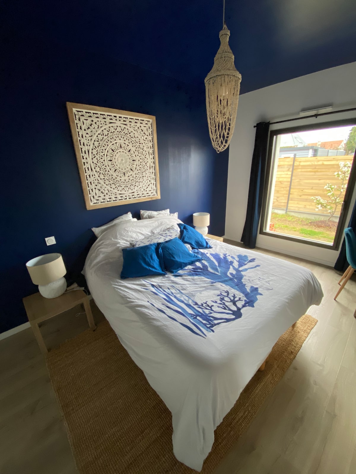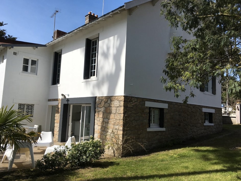 Dans notre maison classée balnéaire, à proximité du centre de Pornichet et de sa gare, un appartement, avec son entrée indépendante, vous attend. La chambre comprend un lit double, une penderie et donne sur une grande terrasse et un jardin. La pièce centrale dispose d une cuisine avec les éléments et équipements permettant d être totalement autonomes. La salle de douche / wc vous est exclusivement réservée. Vous pourrez également profitez des équipements extérieurs : salon, chiliennes...