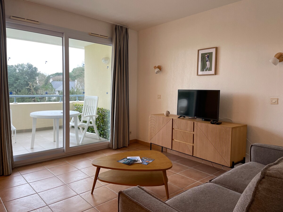 Appartement dans résidence avec piscine, sur le golf international de la Baule entre terre et mer comprenant: une chambre, un salon (canapé convertible, TV), une cuisine équipée, une salle de bains (baignoire),une salle d'eau (douche) wc, une terrasse et un jardin (transats, salon de jardin, parasol) ainsi qu’un box. Le linge de maison est fourni L'appartement est à 10 minutes de l'océan. Calme et détente garantis ! Accès à la piscine à partir du 15 Juin jusqu’au 15 Septembre.