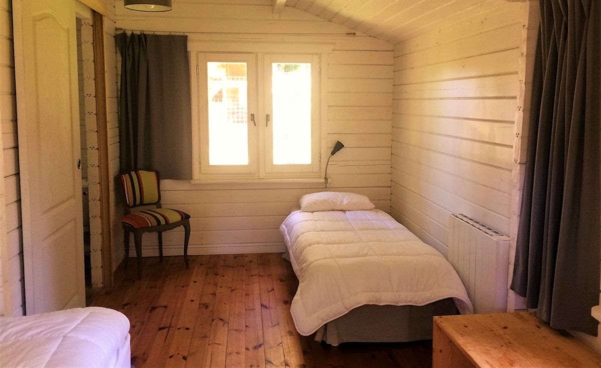 Cabane de charme, ce lieu est un havre de paix noyé dans la verdure. A dix kilomètres des plages de Pornic et St Michel Chef Chef, il offre une tranquillité assurée en pleine nature. Pièce à vivre avec coin cuisine équipée, lit double 140 en alcôve, table et 2 chaises, télévision, radio, wifi, ventilateur et rafraichisseur d’air. Salle de bain indépendante avec douche , vasque et toilette. Lit fait et linge de toilette fournis. Animaux acceptés, le terrain est maintenant clôturé.