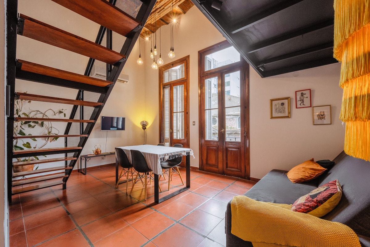 Ascend the floating spiral staircase to the exposed-brick mezzanine bedroom where the king bed can be set up as 2 twin beds when specified. Come morning, the double height ceilings and fine arched windows ensure a long-lasting embrace from the sun, while the New York-style bathroom tiling is equally welcoming. * Please be aware, that my Loft can accommodate up to 4 guests, but 2 would be using floor mattresses. As a welcome gift, I am including a few coffee pods, sugar / sweetener and a bottled water. With its double height windows, our loft is bathed in morning sunlight and very lumunious throughout the day. Based on our love for cooking, despite the kitchen's size which is compact, we made sure it is very complete with a gas oven, microwave, fridge, plates and cutlery for you to enjoy a glass of a good Malbec and a homemade meal after a day discovering this fabulous city. (you are 2 squares away from "Mercado de San Telmo" with plenty of fresh produce) The mezzanine bedroom, reached by a spiral staircase, has 2 twin size beds that can be converted easily into a king size bed , and 2 extra mattresses for 2 more guests. The bathroom has been fully remodeled with New York style tiles, shower/tub, and an separate wash basin. You will have access to the whole Loft Though we live about 1 hour out of town, we are always available and very happy to advise and help you in any way for a really enjoyable stay. San Telmo is the oldest and most traditional quarter of Buenos Aires, retaining its architectural heritage and cobbled streets. Nowadays, the area is also well known for its bars, restaurants, weekend street fair, and many antiques galleries. We highly recommend walking around the neighborhood, so as to enjoy the 19th century constructions and their very precious details. For larger distances, you can choose from buses, subway and taxis. As additional info, you are also in walking distance to Puerto Madero with all its restaurants and nightlife and to Colonia Express for day cruises to Colonia del Uruguay, which by the way, we highly reccomend.