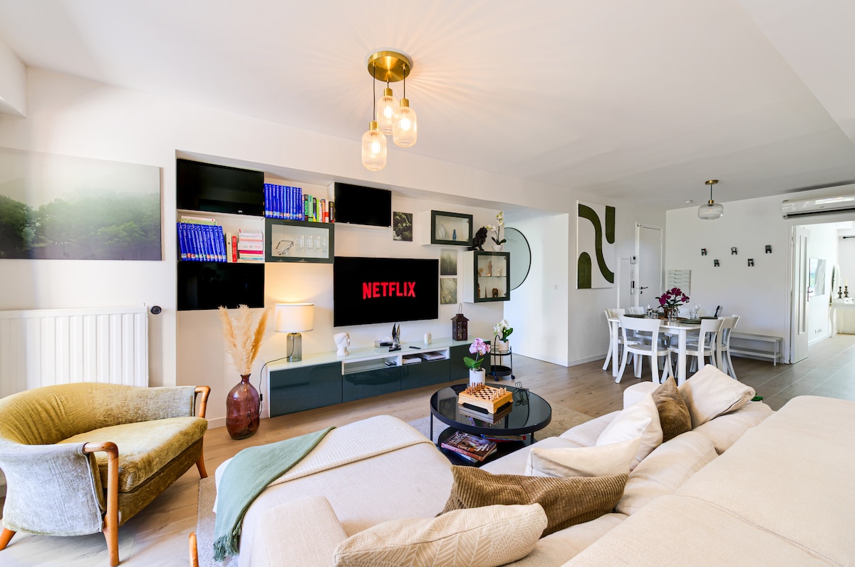 Come and discover serenity in our “Panoramic Riviera Penthouse.” Breathtaking views over the Bay of Cannes await you from your private balcony, offering a unique place to admire spectacular sunsets. An apartment that harmoniously combines luxury and comfort, enhanced by modern amenities, a gentle breeze, and air conditioning for your utmost comfort. With direct access to the beach, immerse yourself in the calm of coastal life. Your getaway starts here for an unforgettable Riviera experience.