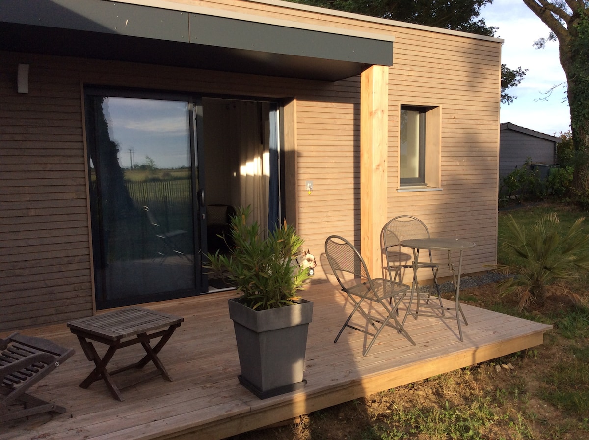 Dans le Vignoble Nantais, petit habitat UNIQUE à DECOUVRIR avec conception bioclimatique, matériaux écologiques: la K'BANNE Autonome (sur terrain indépendant à 40 m de notre maison) Dans la Simplicité, prenez le temps de FLANER, d'EXPERIMENTER cet Habitat MINIMALISTE et son AUTONOMIE en Energies et Eau 5 Couchages en Dortoir (hauteur inférieure à 180 cm) accès échelle Bain (4 m2) avec WC Sec (copeaux) Pièce de vie (11 m2), Terrasse modulable 24 m2 Cuisine au bois, au soleil (ou élect. ou gaz)