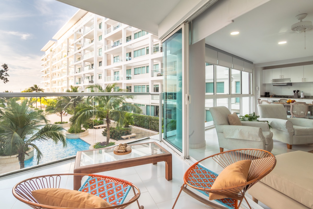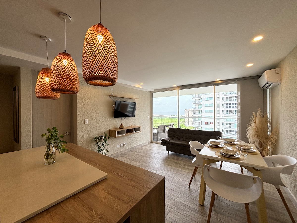 Spacious and stylish apartment with a scenic view of Ciénaga de la Virgen and direct beach access. Enjoy a large balcony, fast Wi-Fi, TV, and a premium Bose sound system. Perfect for relaxing or working remotely. The complex features 3 pools (including one for kids), a jacuzzi, and a fully equipped gym. Ideal for couples, families, or solo travelers seeking comfort, nature, and convenience. We promote a safe and respectful space for all guests.
