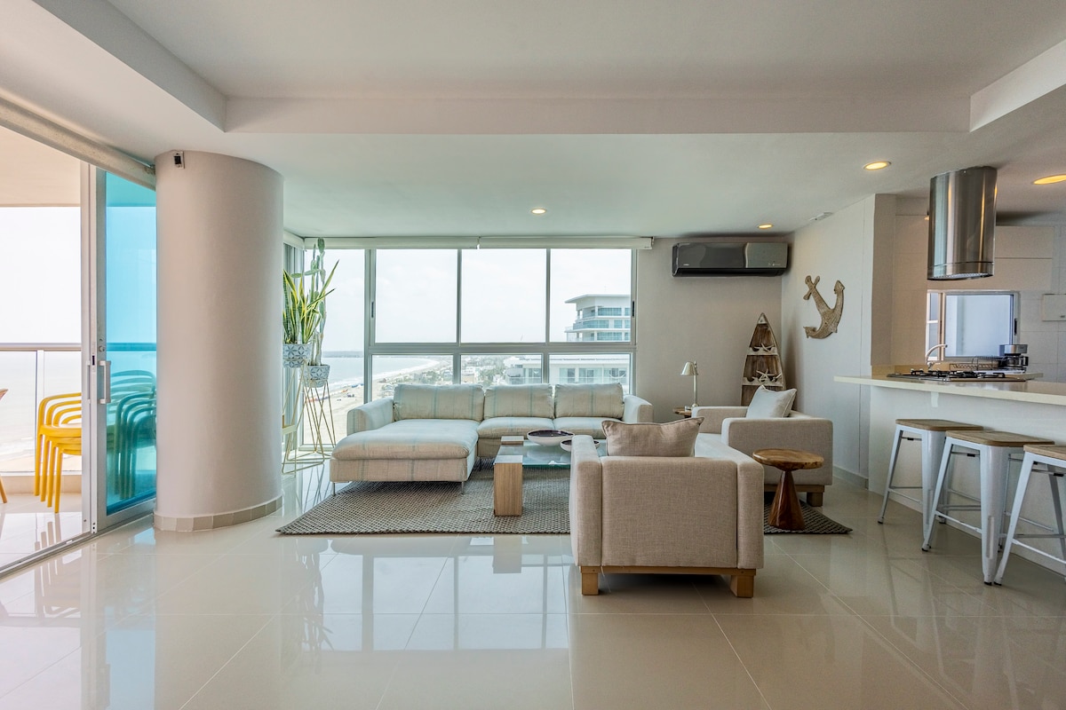 Exclusive apartment with views and direct access to the sea, large balcony, located in the Morros sector, close to the Hotel Las Américas and with the best and quietest beaches in Cartagena. In our apartment you can find everything you need for your family resting and entertainment. Fully equipped kitchen, Wifi, Smart TVs, Bluetooth sound, beach kit. The condominium has two swimming pools, a gym and direct access to the beach. The apartment has a parking lot.