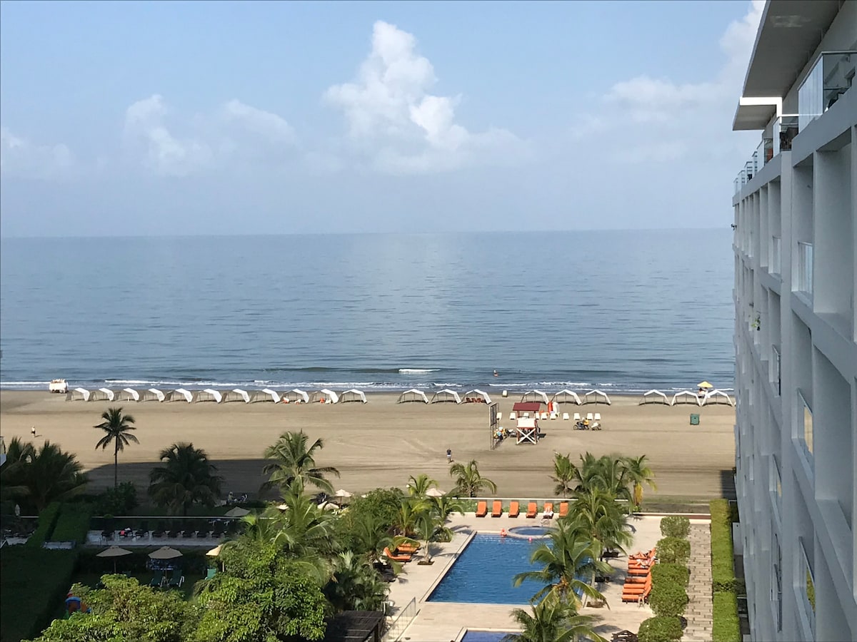 Cartagena Ed Spiaggia. Acogedor, hermoso y amplio apartamento frente a playa, elegantemente amoblado y con comodidades para disfrutar días inolvidables. Salida directa al mar. Espectacular terraza con comedor, asoleadoras, hamaca y hermosa vista. Fácil acceso a 5 min. de aeropuerto y 10 min. del centro histórico. Terrazas con piscinas, jacuzzis, saunas, juegos acuáticos,gimnasio y vista 360°. Restaurantes y supermercados. Empleada disponible adicional.Check in 3 pm,check out 11am sin excepción