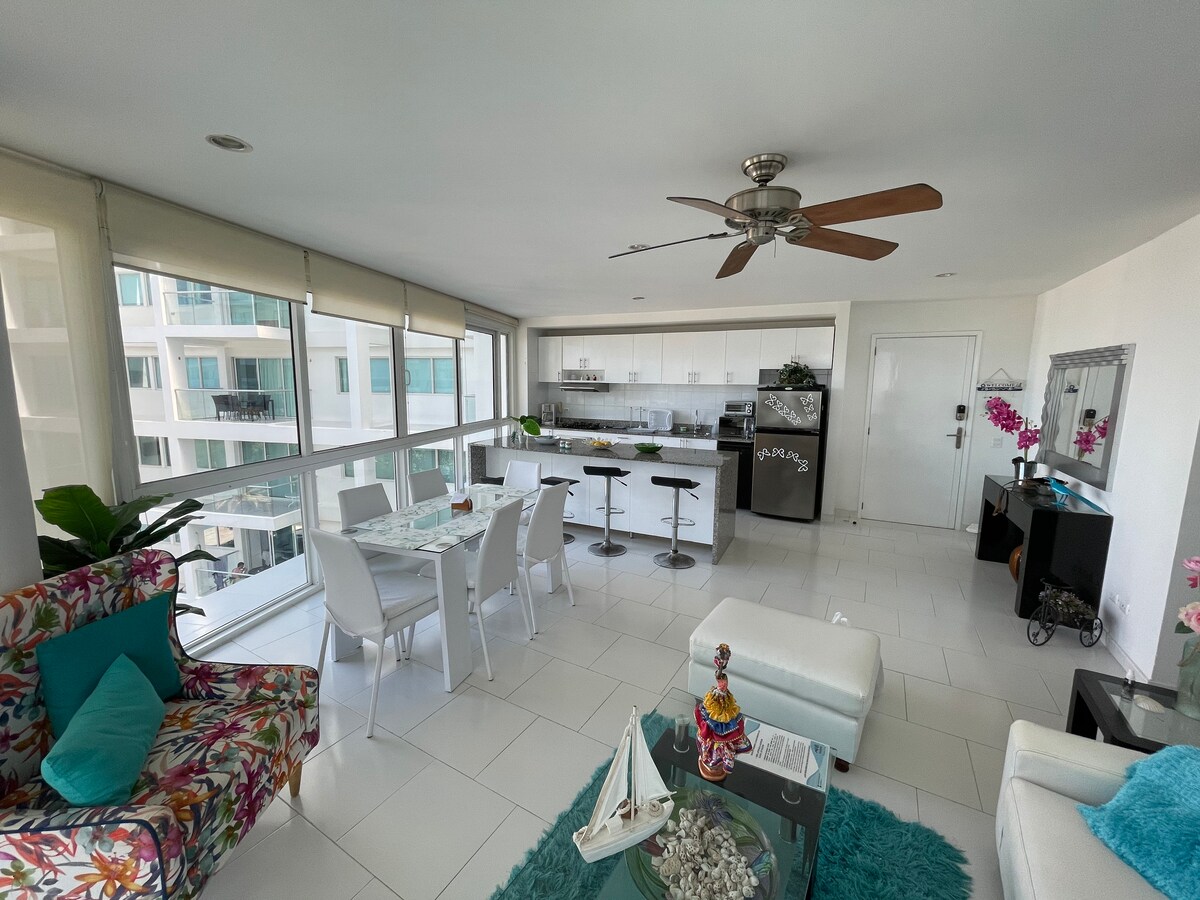 Exclusive apartment with views and direct access to the sea, large balcony, located in the Morros sector, close to the Hotel Las Américas and with the best and quietest beaches in Cartagena. In our apartment you can find everything you need for your family resting and entertainment. Fully equipped kitchen, Wifi, Smart TVs, Bluetooth sound, beach kit. The condominium has two swimming pools, a gym and direct access to the beach. The apartment has a parking lot.