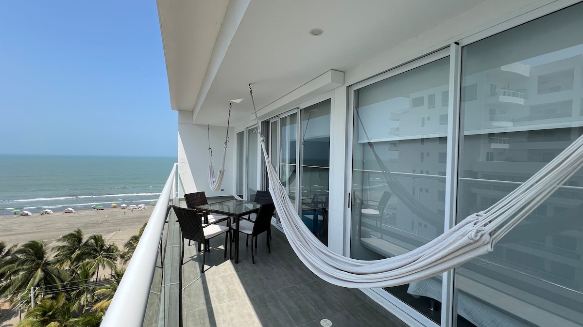 Exclusive apartment in a beachfront building with direct access to the sand. Just 7 minutes from Cartagena’s historic center, perfect for enjoying the Caribbean. Bedroom with a Queen bed + sofa bed (180x110 cm) in the living room 🛁 2 full bathrooms 🌅 Private balcony with hammock 🏊 2 pools (one beachfront), jacuzzi, and sauna 💪 Gym, children's area, and private parking 📶 300 Mbps Wi-Fi – ideal for remote work 🍽️ Close to restaurants, bars, and supermarkets Baby crib available upon request