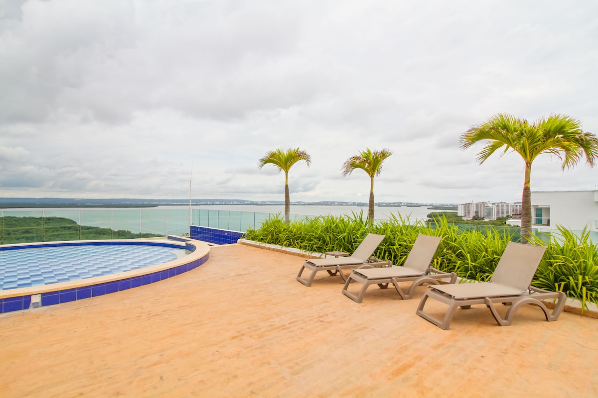 Hermoso apartamento con vista, con salida a la playa , tiene un balcón y una bella vista en la cual se puede observar la bella naturaleza del caribe, el lugar inspira a la paz y la tranquilidad de un esplendoroso lugar, esta ubicado a pocos pasos de la playa a pocos pasos de la Boquilla Tiene una zonas comunes espectaculares , centro de fitness, bar y conexión WiFi gratuita. Este apartamento ofrece aparcamiento privado gratuito y servicio de recepción las 24 horas