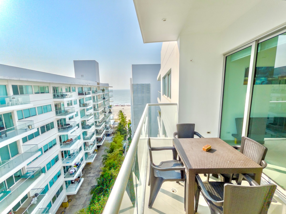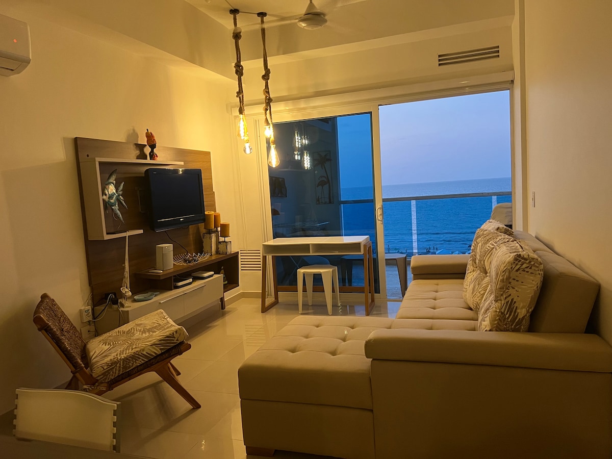 Exclusive apartment in a beachfront building with direct access to the sand. Just 7 minutes from Cartagena’s historic center, perfect for enjoying the Caribbean. Bedroom with a Queen bed + sofa bed (180x110 cm) in the living room 🛁 2 full bathrooms 🌅 Private balcony with hammock 🏊 2 pools (one beachfront), jacuzzi, and sauna 💪 Gym, children's area, and private parking 📶 300 Mbps Wi-Fi – ideal for remote work 🍽️ Close to restaurants, bars, and supermarkets Baby crib available upon request