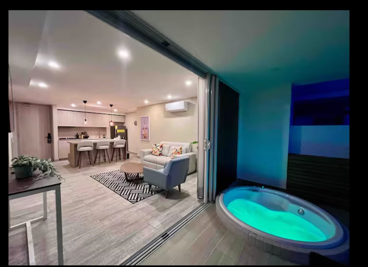 Our elegant apartment is located in one of the most complete and modern buildings in the exclusive "Cielo Mar" sector. You'll be just a few meters from "Playa Azul," one of the city's best beaches, 10 minutes from the Historic Center, and only 5 minutes from the airport. The apartment has extraordinary views of the bay and ocean, which you can enjoy from the private jacuzzi on your balcony. You can also enjoy the incredible rooftop infinity pools, complete with jacuzzi, sauna, terrace bar & BBQ